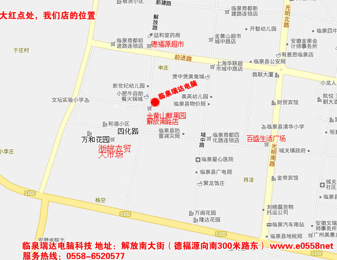 联系电话:0558-6520577 联系地址:解放南大街(皖浙农贸大市场向北100米路东)临泉瑞达电脑